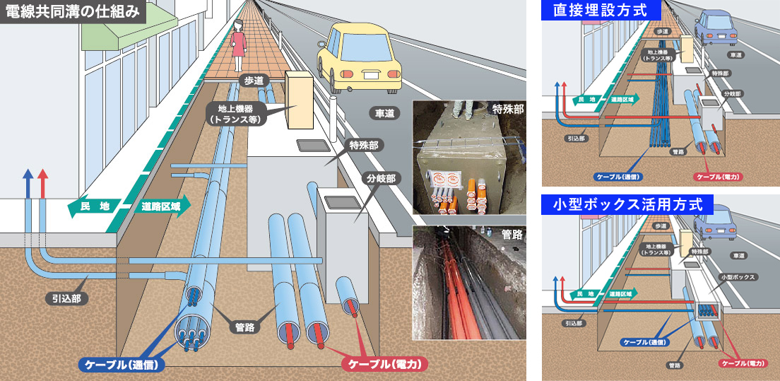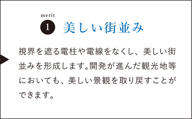 美しい街・災害に強い街・快適な生活空間確保の観点から、近年全国で進められている配電線の地中化(無電柱化)事業に伴う地中電力設備の設計を行います。