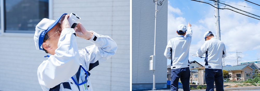 道路や河川、変電所構内など、市街地から山間部まで様々な場所にある電力設備の調査