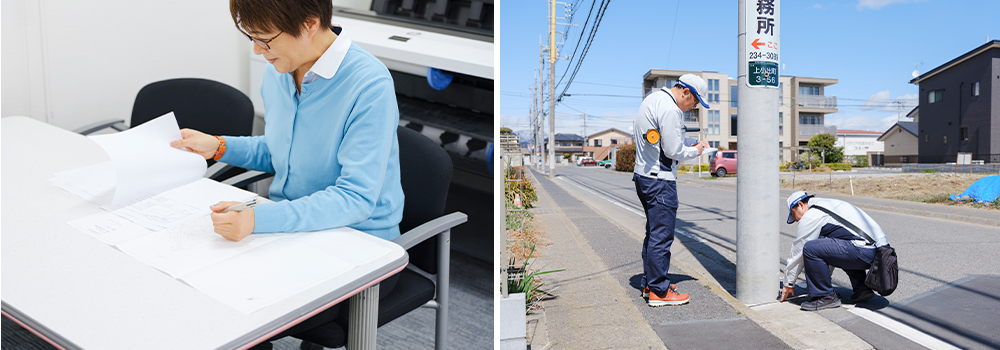お客様のご要望に応じて各種調査や図面類・書類等の作成を行います。